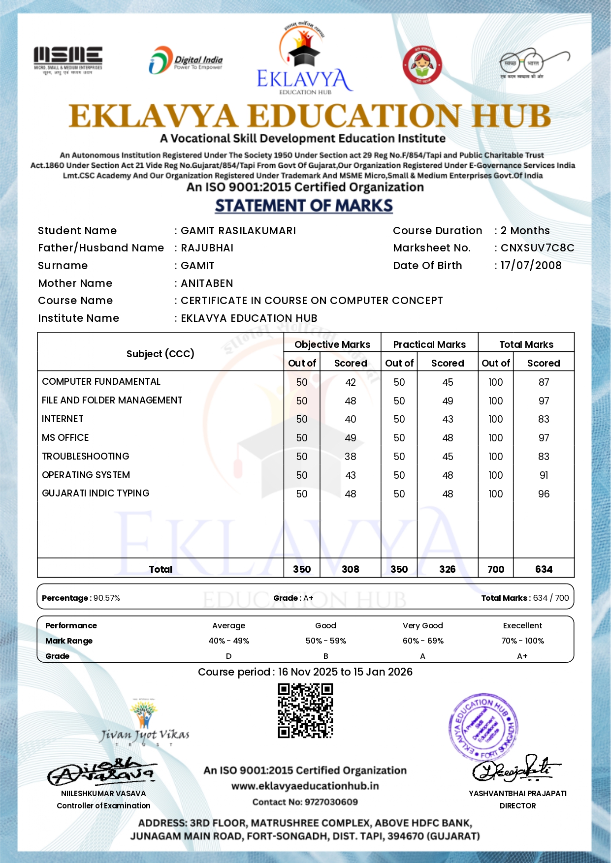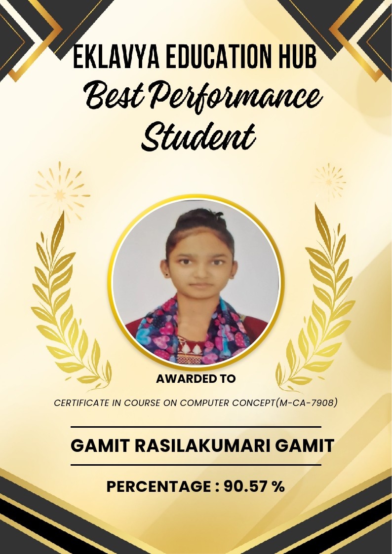 STUDENT ACHIEVEVEMENT BEST PERFORMANCE CARD